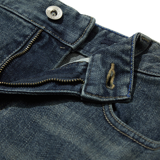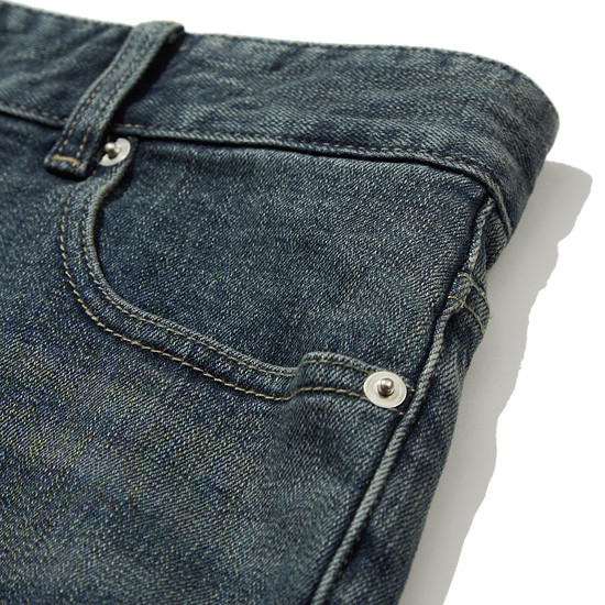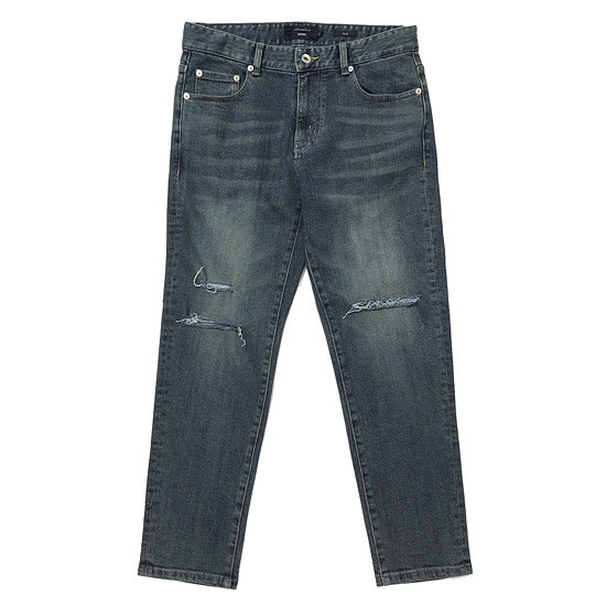 - 빈티지한 디스트로이드로 포인트를 준 데님 팬츠.