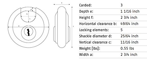 ABUS 28/70 B KD Buffo Diskus, Self Storage Stainless Steel Keyed Different Diskus Padlock