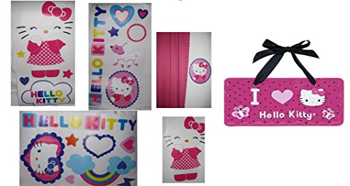 -. Title : Hello Kitty Room Decor Bundle - 2 Items: 12"x24" 3 Sheet Wall Decals and Hello Kitty Plaque
