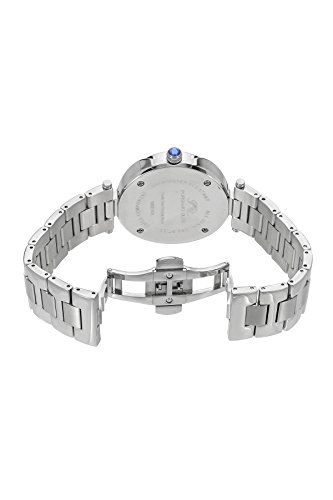 BRAND NEW MOON PHASE STYLE! 40 mm case diameter; 11 mm case thickness; Silver tone stainless steel case and bracelet; Carved mother of pearl white dial with black elements; blue Swarovski® crystal (1.5 mmx 1 PCS=0.02 ct.) inlaid