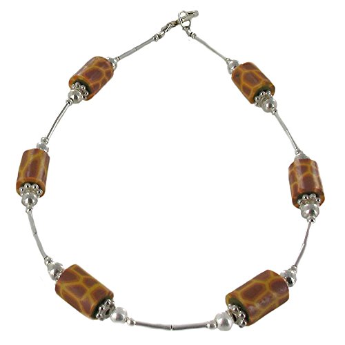 -. Title : Womens Giraffe Animal Fimo & Sterling Silver Ladies Beaded Anklet with Daisies