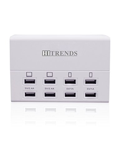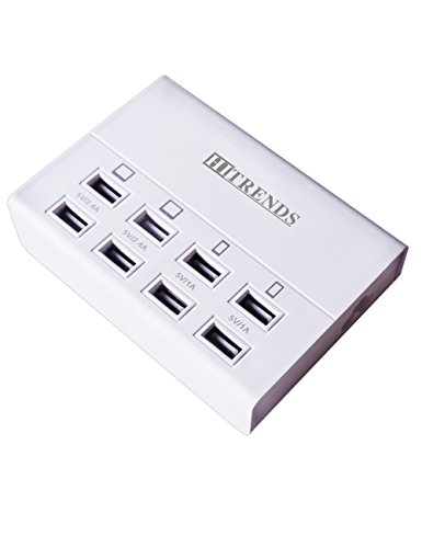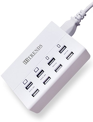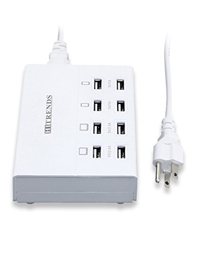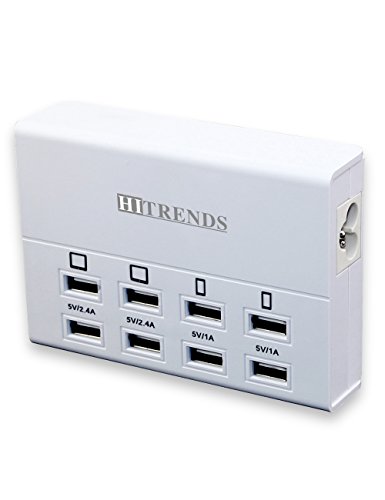 -. Feature : 8 Intelligent USB Ports: 5V/2.4A*4 with 5V/1A*4 USB ports detect your devices automatically and deliver the fastest possible charge up to 2.4 amps or 10 amps overall, 8 USB ports allow charging up to 8 devices simultaneously. / Travel Charging Station:Wide input voltage range of AC100-240V which suits for international travel perfectly, compatible with all 5V USB-charged devices like iPad, iPhone, Samsung tab, smartphones, external battery, Bluetooth speaker, headset and so on. / Compact and Portable Design: Light weight and compact design is ideal for home, office and desktop use, much more space-saving and well-organized while charging your devices. / Multiple Safety System: Hitrends USB charger hub features surge protection, over-current and over-voltage protection, which will protect your smart devices securely. / Outstanding Industrial Design: The multi-port usb charger is certified by FCC, RoHS, made of fire-resistance PC shell and 100% copper wire, the performance is guaranteed by Hitrends
