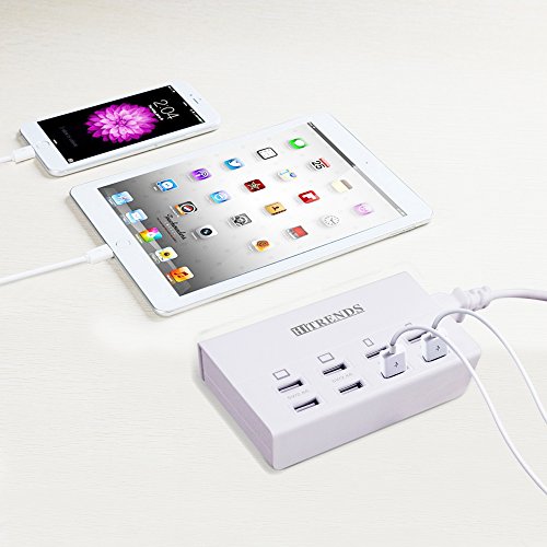 -. Title : HITRENDS 8-Port Charging Station 50W/10A Multi-Port USB Charger Desktop Hub Portable Travel Charger for iPhone 6s / 6 Plus, 5 / 5s, iPad Air 2 / Mini 3, Galaxy S6 / S7 Edge (6ft Cord, White)