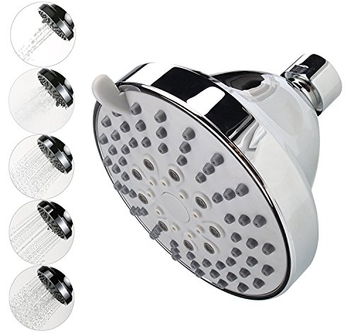 Shower Head with 5 Setting, Sarissa High Pressure Rainfall Shower Head for Bathroom, 4" Wall Mount Showerhead , Easy Installation