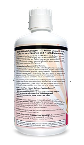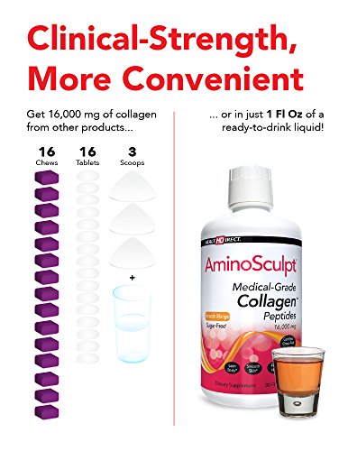 Around the age of 30, your body's ability to produce collagen diminishes. You feel and see the effects of this collagen deficiency every day in the mirror. As you age wrinkles form, skin dries, hair thins and dulls, nails become brittler, your joints lose flexibility, and your body loses its muscle tone. Aging is collagen loss. But AminoSculpt Sugar-Free can help. AminoSculpt Sugar-Free is the original anti-aging collagen peptide supplement. It is the only Type 1 collagen peptide supplement backed by 30 years of medical use and clinical research, and is the first liquid collagen protein with NO sodium benzoate or potassium sorbate. 90% of your body's collagen is Type 1 - and every serving of AminoSculpt provides you with a high dose of pure, absorbable, dipeptides and tripeptides from Type 1 collagen protein. The amino acids in these peptides are what your body needs to build and maintain healthy collagen, so you can look and feel younger than ever. AminoSculpt Sugar-Free is a true medical-grade, whole food supplement. We start with pasture-raised, certified grass-fed collagen protein and follow a rigorous 15 step manufacturing process. Every one of the ingredients in AminoSculpt Sugar-Free is GRAS (Generally Recognized as Safe) by the FDA, is non-GMO and screened for identity and purity according to CGMP (Current Good Manufacturing Practices). The manufacturing facility is audited the FDA and even inspected by an independent quality control agency. AminoSculpt Sugar-Free is the highest concentrated, most convenient collagen peptide supplement available. High dose collagen provides superior beauty benefits, plus additional ones like improved weight loss, joint health, and sleep. You can get high doses of collagen from other products, but you'd need to take 16 chews, 16 tablets, or mix 3 scoops of powder with water. Or, you can take 1 Fl Oz of ready-to-drink AminoSculpt Sugar-Free. AminoSculpt Sugar-Free is gluten-free, sugar-free, soy-free and paleo-friendly.Feature
