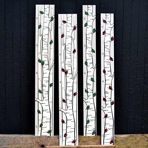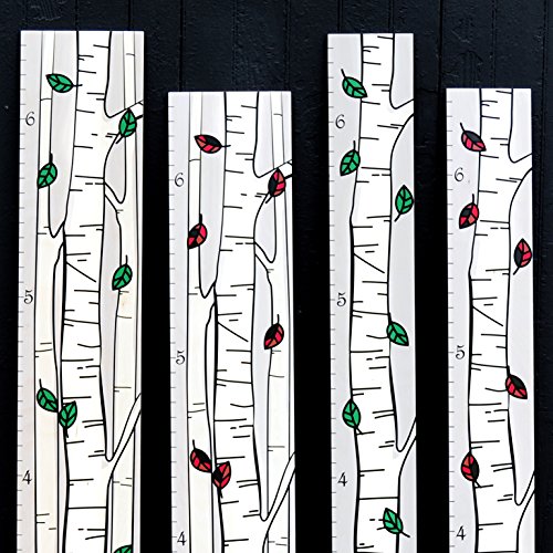 Growth Chart Art | Hanging Wooden Height Growth Chart to Measure Baby, Children, Grandchildren, Twins, Siblings - Birch Trees with Green Leaves - Wall...