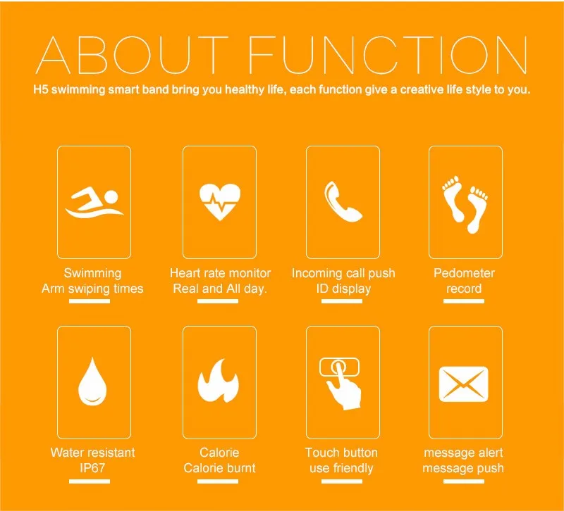 - Function:Remote Control,Alarm Clock,Passometer,Message Reminder,Sleep Tracker,Heart Rate Tracker,Call Reminder,Fitness Tracker