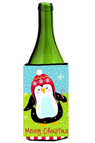 Caroline's Treasures VHA3015LITERK Merry Christmas Happy Penguin Wine Bottle Koozie Hugger, Multicolor, 750ml
