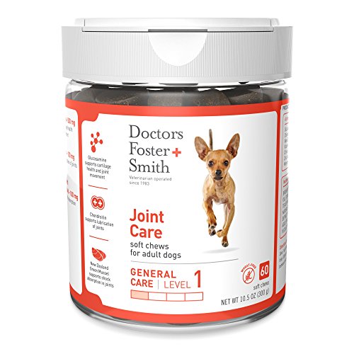 -. Binding : Misc. -. Brand : Drs. Foster & Smith -. EAN : 0800443225516 -. Feature : Joint Level 1 supplement for dogs by Doctors Foster + Smith / Soft chews made with a flavor your dog will love / Features chondroitin and glucosamine for dogs, which supports cartilage and joint health / Contains New Zealand green mussel which supports shock absorption / Wheat-free joint supplement for dogs -. Label : Drs. Foster and Smith -. Manufacturer : Drs. Foster and Smith -. MPN : 44322551 -. PackageQuantity : 60 -. PartNumber : 44322551 -. ProductGroup : Pet Products -. ProductTypeName : PET_SUPPLIES -. Publisher : Drs. Foster and Smith -. Studio : Drs. Foster and Smith -. Title : Doctors Foster + Smith Joint Level 1, 60 count -. UPC : 800443225516