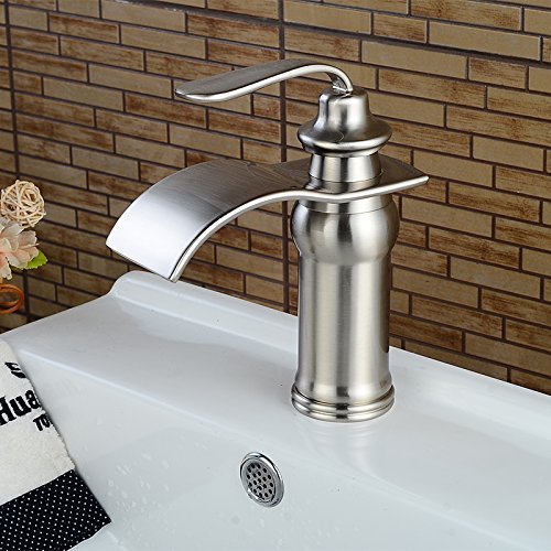 -. Title : Beelee BL0602N Nickel Brushed Waterfall Bathroom Sink Faucet,Single Handle Single Hole Vessel Lavatory Faucet,Basin Mixer Tap