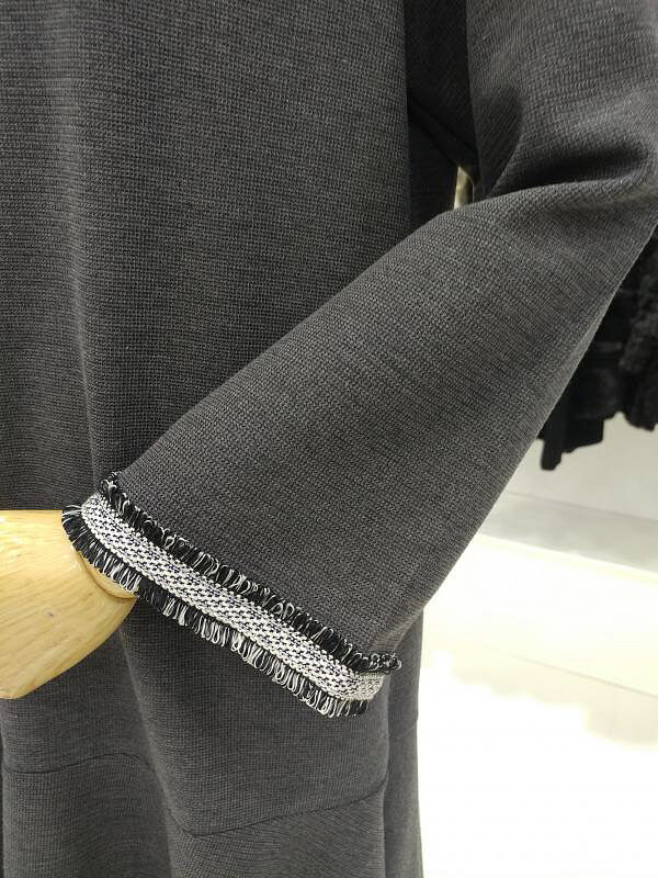 네크라인과 소매부분에 가미된 디테일이 고급스럽고 단정한 세련미를 더해줍니다