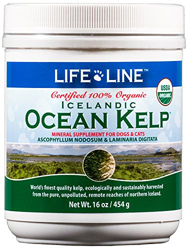 A rich source of natural vitamins and minerals including trace elements that replace those missing in foods grown in mineral depleted soils. Essential for balanced growth, health and reproduction, Life Line Pet Nutrition’s Ocean Kelp is harvested to the strictest international standards and then dried at a uniform low temperature by hot geothermal water fed through heat exchangers. Ocean Kelp is a vital source of naturally occurring phytochemicals and Omega-3 fatty acids that are undamaged throughout our gentle processing steps. One of Ocean Kelp's many key benefits is that it supports a reduction of buildup of plaque and tartar for healthy teeth and gums along with clean fresh breath. You will notice general improvement in overall health along with vibrant, healthy, skin and coat and a reduction in shedding. In addition, Ocean Kelp™ contains Laminaria digitata, an extremely valuable kelp generally not included in pet kelp supplements, which has been cited in several publications. 100% Certified Organic by Washington State Dept of Agriculture to USDA National Organic Program standards. Grown in Iceland, packaged in the USA. Includes handy scoop.Feature