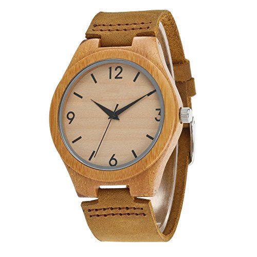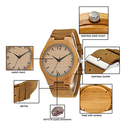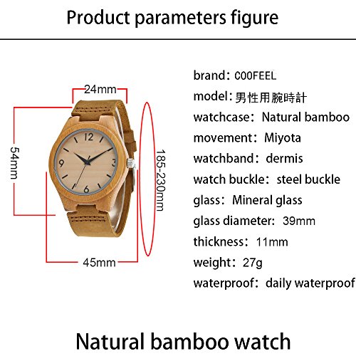 원본상품명: COOFEEL 木製腕時計 牛革レザ?ストラップ付き竹製腕時計 メンズ アナログ腕時計 天然木 カレンダ?付き 彫刻 クリスマスプレゼント 贈り物(メンズ腕時計)