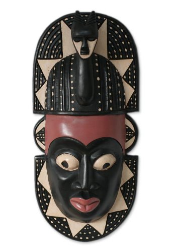 NOVICA Decorative Large Sese Wood Mask, Black, 'Harvest Festival'