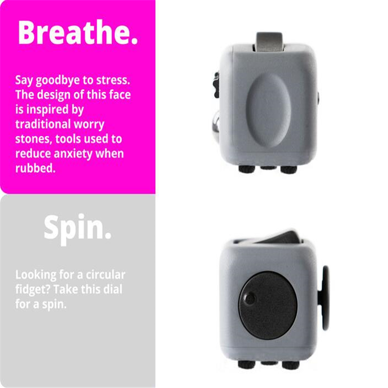 - Roll it, Spin it, Click it, Flip it, and watch your stress melt away! The Cube is White and the Fidget sections are Black.