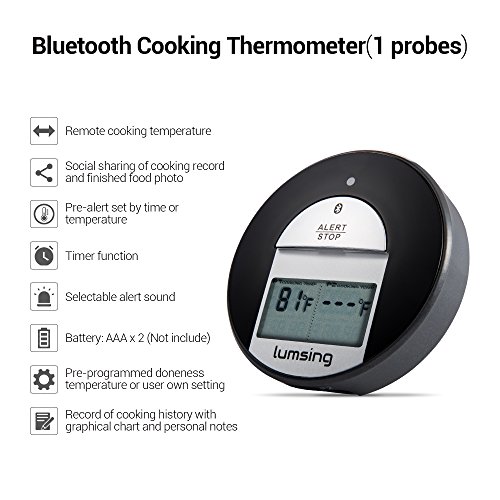 Lumsing Thermometer, Kitchen Thermometer, Meat Thermometer, Cooking Thermometer Bluetooth for Kitchen BBQ Grill Oven Smoker Thermometer with One Stainless Steel Temperature Probe, A550