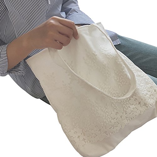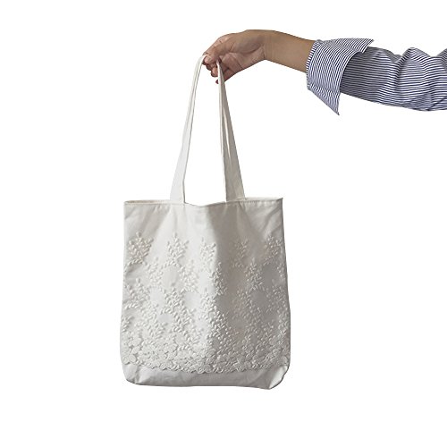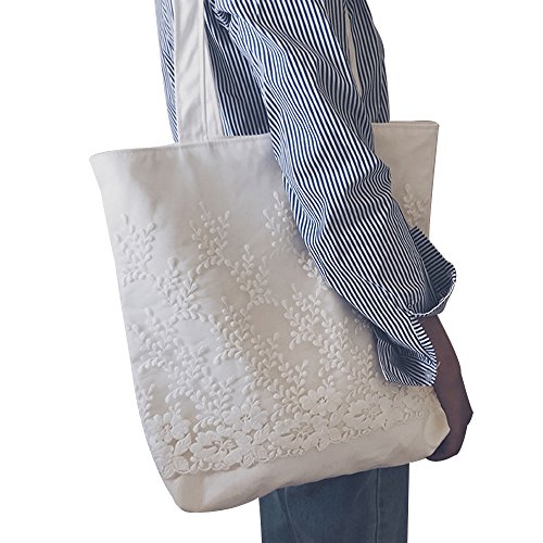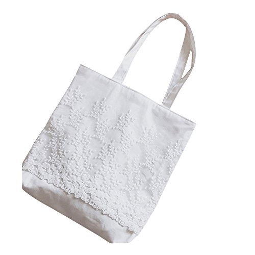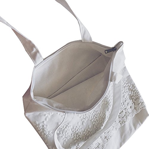 Flowertree Women's Floral Embroidered Lace Canvas Tote Bag Shoulder Bag