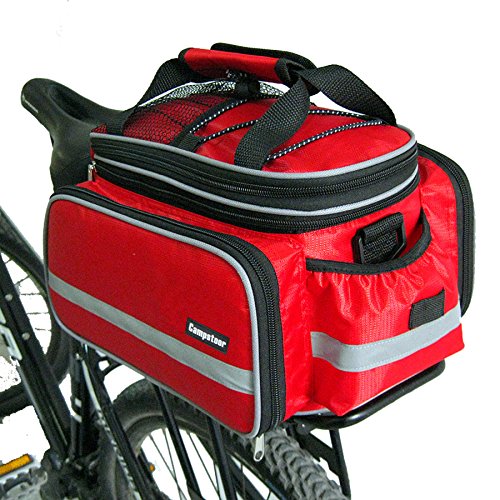 Handy drink pocket in back,Fits easily on the back rack, and easily removed also