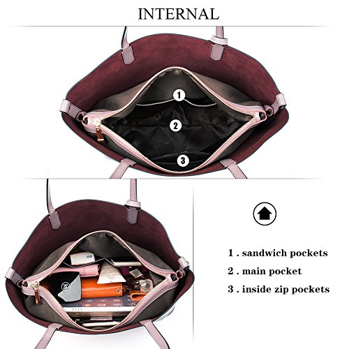 - [INTERNAL STRUCTURE] This leather handbags contains 1 big inner compartment, 1 sandwich pocket, 1 inner zipper pocket. Large capacity designed, this leather handbags comfortably holds an iPad, iPhone6s Plus, wallet, cosmetic, and other daily things.