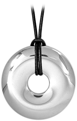 Kaltner Prasente Geschenkidee - Lederkette fur Damen und Herren mit DONUT Anhanger aus dem Edelstein HAMATIT Silberfarben (bedampft)