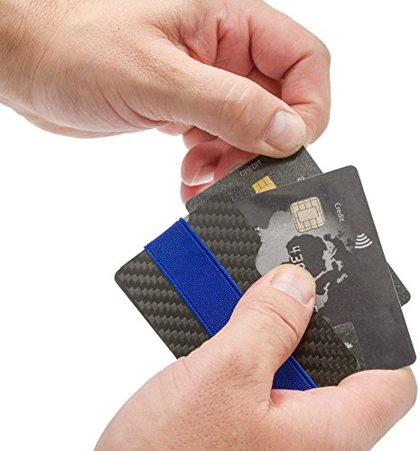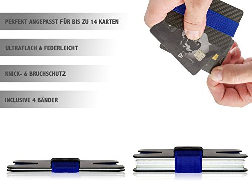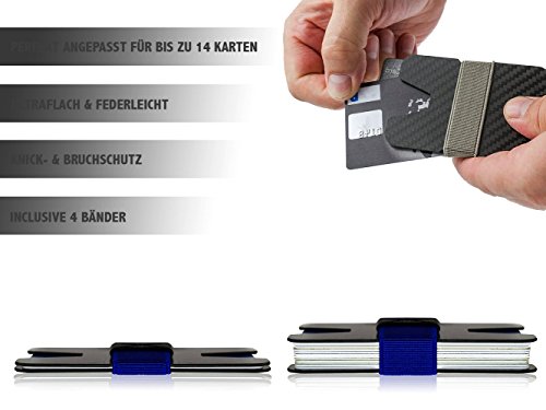 Luxus Vagabund Kreditkartenetui aus Carbon fur Herrren mit RFID Schutz und vier farbigen Haltebandern als Geldklammer