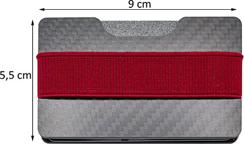 KLEIN UND HANDLICH: Die Herrengeldborse hat eine Grosse von 9 x 5,6 cm und ist leer nur etwa 1mm dick. Sie passt bequem in jede Tasche. Das Karbon ist zudem ein RFID-Blocker und verhindert Datenklau.