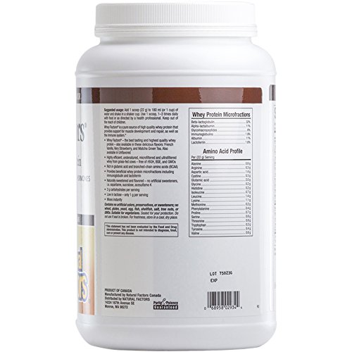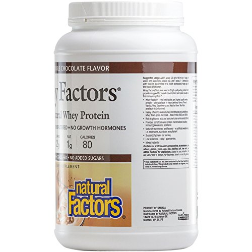 Studio : Natural Factors Publisher : Natural Factors Binding : Health and Beauty Product Description Natural Factors Whey Factors is a high quality, low carbohydrate protein powder with a high biological value. Whey Factors is rich in muscle-enhancing branched-chain amino acids (BCAAs). Not just for athletes, Whey Factors is an excellent dietary source of protein for active adults, children, the elderly or anyone who needs to boost their intake of protein. Low in lactose, and with only 1 gram of digestible carbohydrates per serving, Whey Factors is 100% whey in a non-hydrolyzed, high quality concentrate and non-denatured isolate protein blend. 0