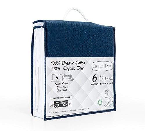 OrganicPro 100% Certified Organic Cotton 6 Piece Queen Bed Sheet Set by Cifelli Home – Deep Pocket & Eco-Friendly (Queen, White)