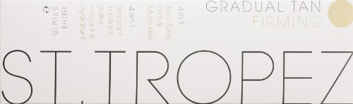 Gradual Tan Plus Firming 4 in 1 cleverly combines antiaging skin care benefits with a healthy touch of bronze to help moisturize, firm, tone, and provide naturally looking tanned skin. Made exclusively for St. Tropez, Chronodyn™ activates the cells and improves the tone and firmness of even problem areas. The easily absorbed lotion provides 24-hour moisture and a protective anti-oxidant barrier to reinforce skin’s natural defenses. Infused with eco-cert approved DHA (an all natural tanning agent), your subtle glow will develop in 4-8 hours.Feature
