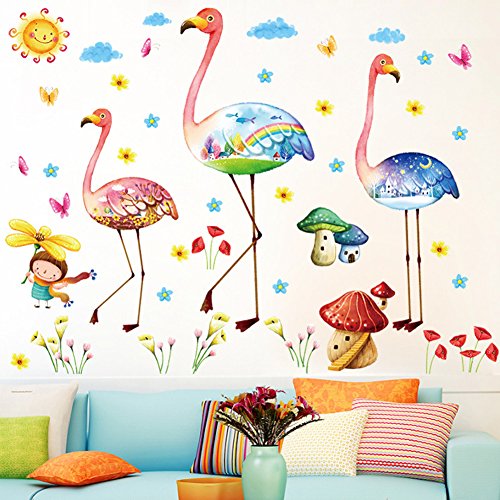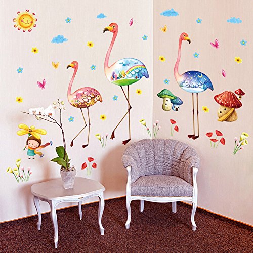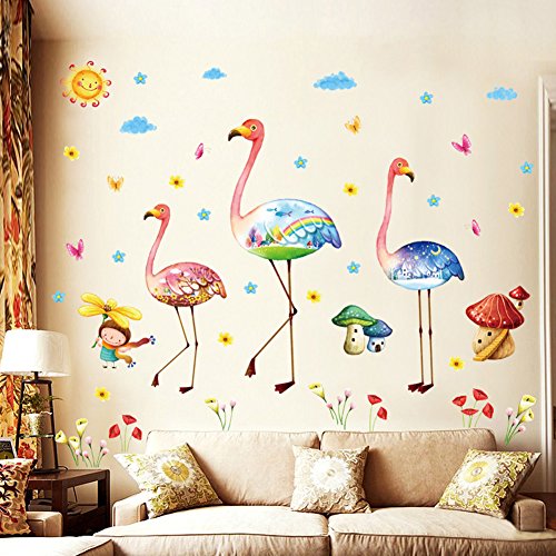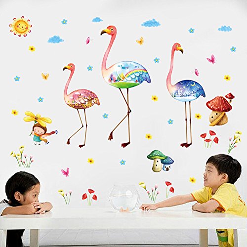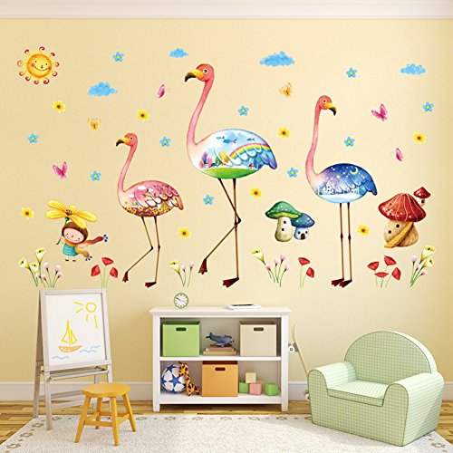 -. Title : Wallpark Cartoon Creative Flamingo Little Girl Flower Removable Wall Sticker Decal, Children Kids Baby Home Room Nursery DIY Decorative Adhesive Art Wall Mural