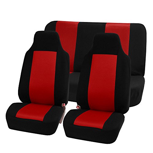 FH-FB102112 Classic Cloth Car Seat Covers Red / Black color B001U8QS9I