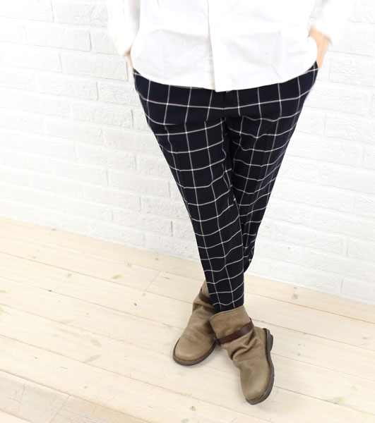 DONEEYU(ドニーユ) ポリエステル レーヨンアクリル 9分丈 チェック柄 テーパードパンツ・U-2667