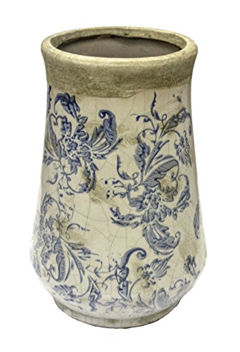 -. Feature : Dimensions: 5L x 5W x 8.25H in. / Cement construction / Floral vintage design / Blue, beige, and white finish