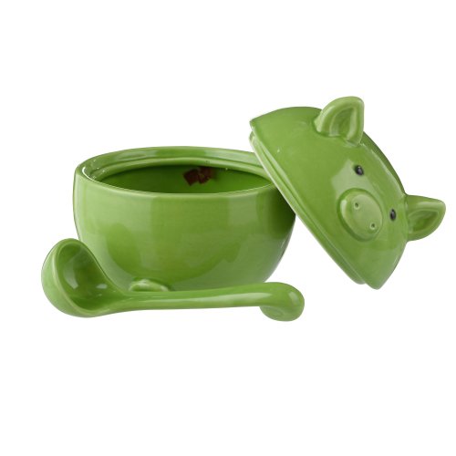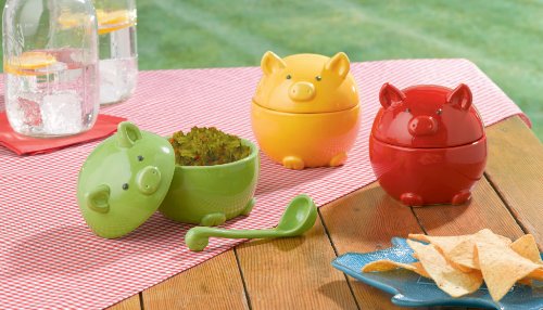 Grasslands Road Pig Condiment Bowl with Spoon Assortment, 4-Inch, Set of 6