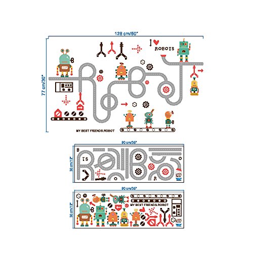Amaonm Creative Cartoon Removable Environmental Protection DIY Curved Road My Best Friends Robot Wall Decals PVC Wall Stickers Murals Nursery Decor for Children Room Kids Bedroom Boys room Classroom