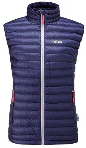 Studio : Rab Publisher : Rab Binding : Misc. Product Description The Women's Microlight Vest is a light-weight, weather-resistant down vest, designed to provide core warmth for a range of activities from fast-and-light alpine activities, to mountain marathons and day-to-day use. A mini stitch-through baffle construction and a minimal, uncluttered design make the Women's Microlight Vest ideal for use as a layering piece for alpine climbers, or an adaptable stand-alone vest for day-to-day use. 80g (UK 12) of 750FP Hydrophobic Down provides excellent warmth without compromising on weight, and is protected by a breathable and windproof Pertex Microlight outer fabric. The Women's Microlight Vest is a technically featured piece, with YKK zipped pockets throughout, including a chest pocket which doubles as an integrated stuff sack for increased packability. Lycra bound armholes and a hem drawcord ensure a secure fit for layering use. 0