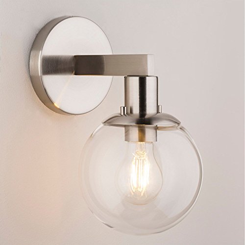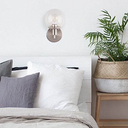 Sferra Wall Light Sconce with LED Edison Bulb Included. Brushed Nickel with Globe Glass Shade. Modern Industrial Factory Style. UL Listed, Linea di Liara LL-SC225-BN