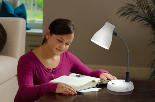 Verilux Tazza Natural Spectrum Desk Lamp, Adjustable EasyFlex Gooseneck, USB Charging Port, In-Base Outlet
