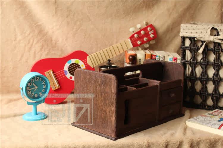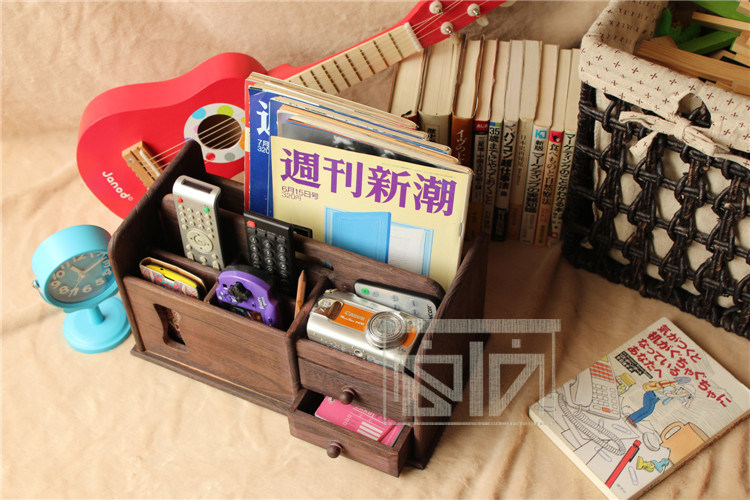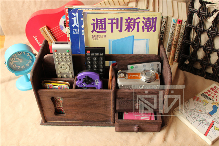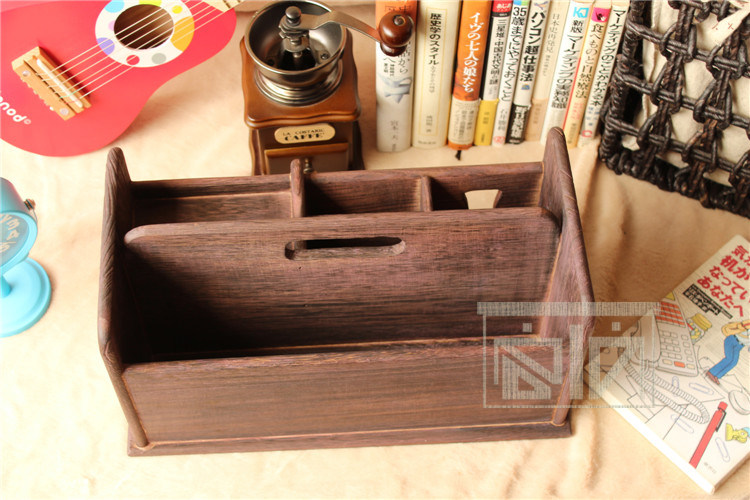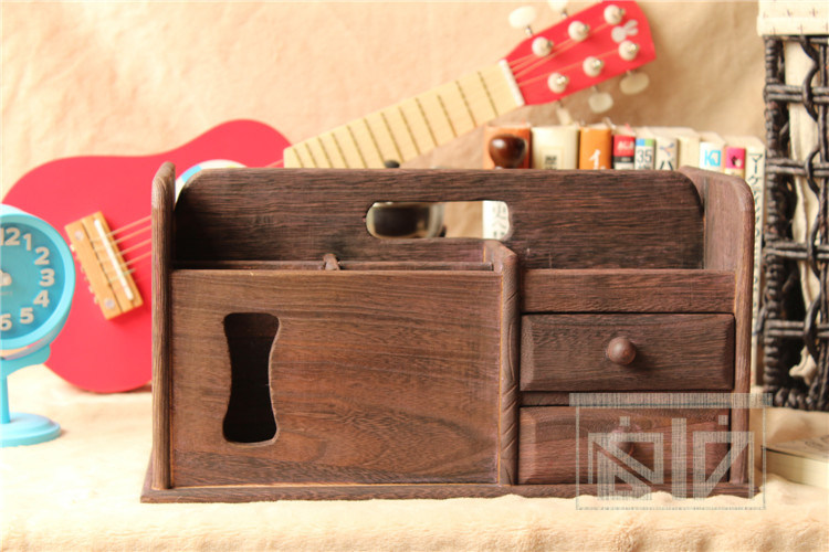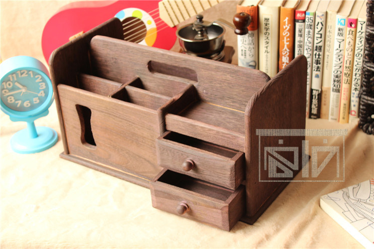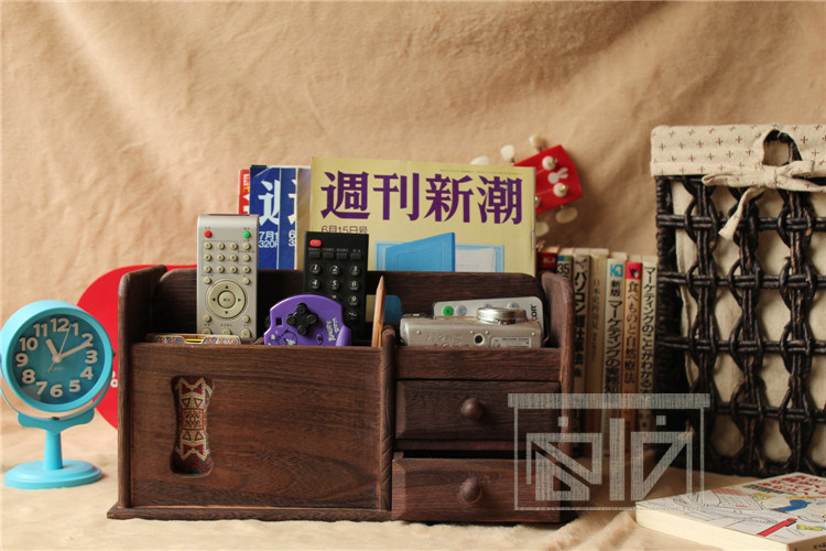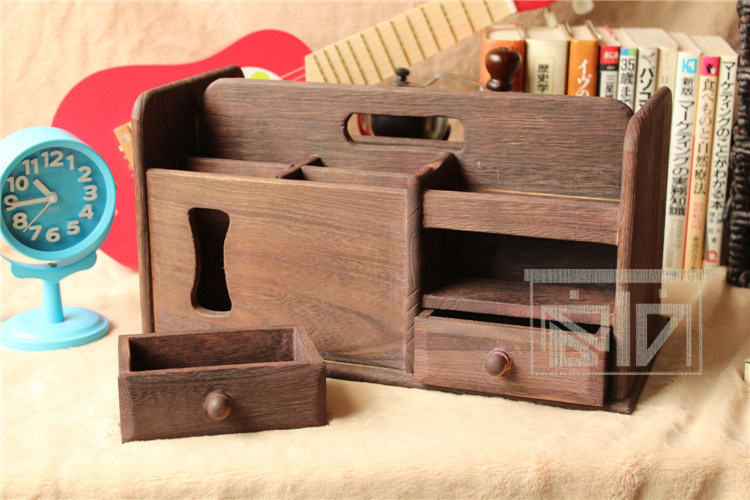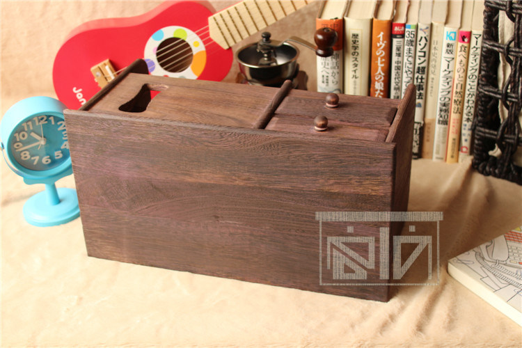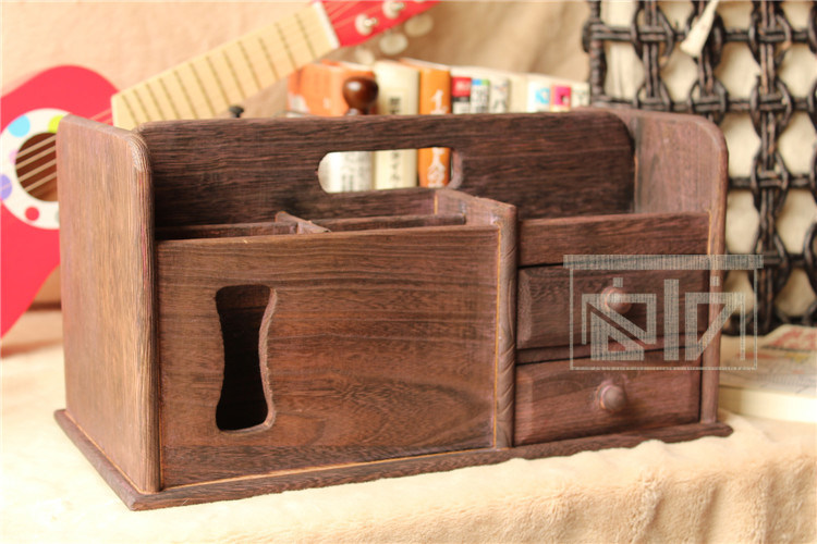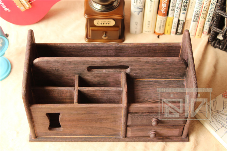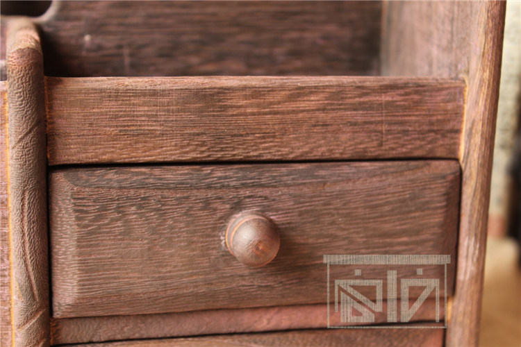 做旧烧桐木桌面收纳盒