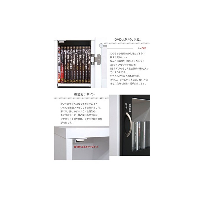 당신의 방에는,DVD가 정돈되지 않고 남아 있는 그런 것은 아닐까요?그런 분 에 꼭 추천 하고 싶은 이 상품.문에는,중이 잘 보이는 바와 같이(하도록) 유리가 끼워 있음으로 하고, 중으로 무엇을 수납했든가 알기 쉽게 되고 있습니다.지금부터 방을 디자인하는 사람도,지금부터 더 사게 되어도 좋은 하고 싶은인도,부디 어떨까요?