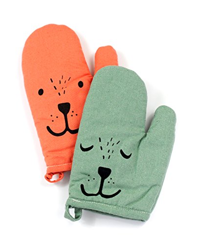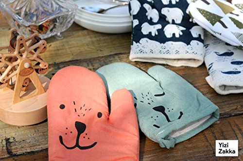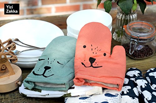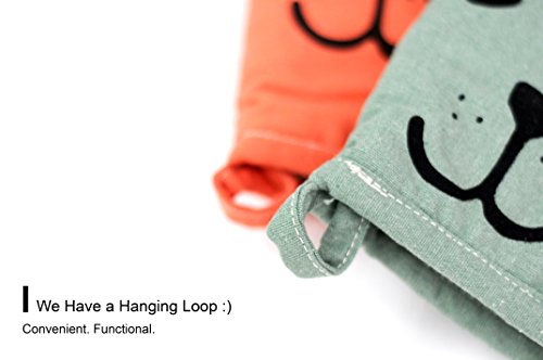 Yizi Zakka Cotton Oven Mitts, Cute Smiling Face, Heat Resistant Potholders, Oven Gloves for Cooking, Baking, Microwave, 1 Pair (1 Green and 1 Orange)