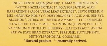 -. Feature : With pure Manuka Honey blended with Aloe Vera, Bilberry and Witch Hazel / Removes remaining traces of oil, makeup and dirt and prepares the skin to maximize the benefits of your moisturizer / 92.7% natural and not tested on animals / Replaces old product MHT1