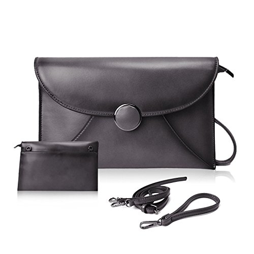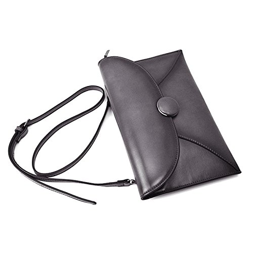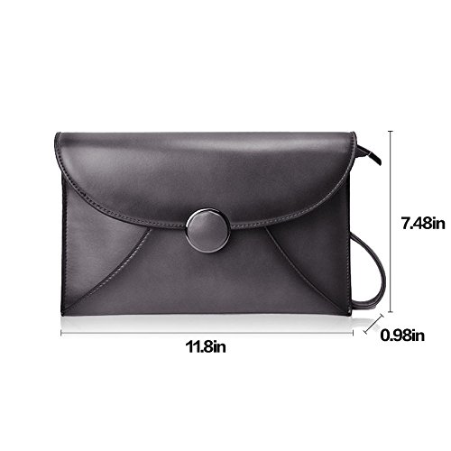 -. Feature : Smooth Space Grey Hardware, big button snap closure, no rust, P.R.Ime / Premium cowhide leather with waxing and oiling finish, tidy polyester interior, soft hand feeling / Structures: 1 large compartments for smartphones under 6 inch, small makeups, wallet case; 1 hidden zipped pocket; 1 side pouch / Versatile Clutch Wristlet / Shoulder Crossbody Purse, two removable leather strap for better convenience and versatile carrying / [Medium SIZE]: 11.8''(L) x 0.98''(W) x 7.48''(H), fits for smartphones, mini tablets, etc. The Shoulder Strap is about 49" long, fully adjustable