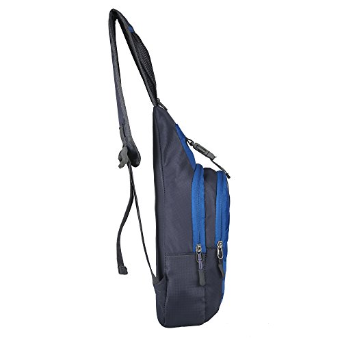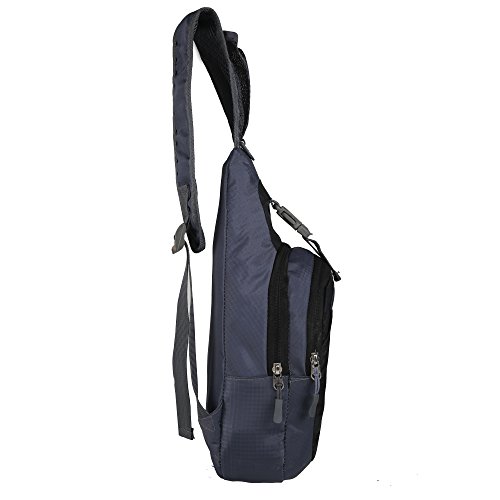 -. Feature : Size: the front small compartment is 5.5"*6.7" (14*17cm); the middle zippered compartment is: 5.5 "*9.5"*1.95" (14*24*5 cm) and the LARGEST compartment is: 8.6"*11"*2.36" (22*28*6cm) / Multi-Purpose:Three Main Compartments and One Buckle Lock to secure all your items. The front small compartment can hold some small things. There are small pouches in the middle compartment; you can put sunglasses, phone, headphones, keys and your pen. the LARGEST compartment can hold ipad(up to 8 inches), and there is one small pouch in the largest compartment, which can hold 7 inches tablets, notebook and wallet. / High Quality Nylon Shoulder Bag and water-resistant: Lightweight and perfect for traveling/biking/hiking - lots of places to keep your items organized. / Great flexibility: it can be used both as chest pack and shoulder bag, can be worn in the front or back.