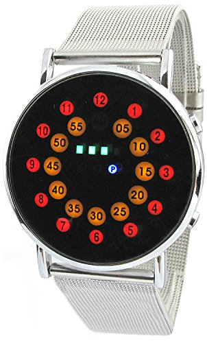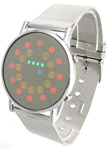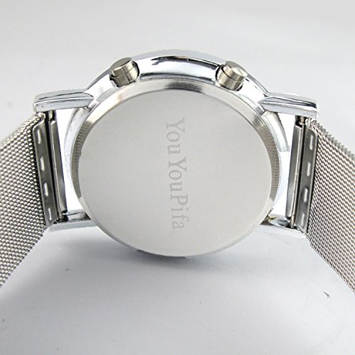 -. Title : YouYouPifa Red+Yellow+Green+Blue LED Light Stainless Steel Fashion Wrist Watch