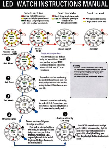 -. Feature : Red, Yellow, Green, Blue four colors LED Light display / Daily water resistant, please don't put it in water