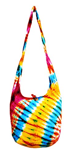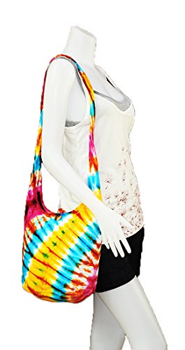 Thai Hippie Tie Dye Hobo Sling Crossbody Shoulder Bag Purse Handmade Zip Mix Pattern Cotton Gypsy Boho Messenger Medium (M1666)