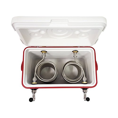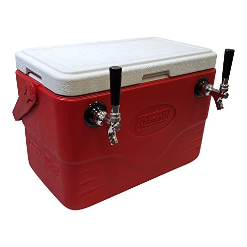 NY Brew Supply 50' Stainless Steel Coils Jockey Box Cooler with Double Faucet, 28 quart, Red