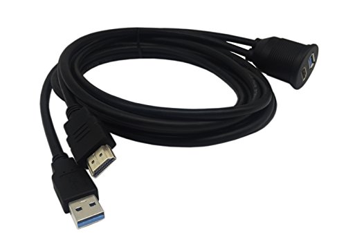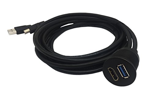 Cerrxian 2m 6.5ft USB & HDMI Panel Flush Mount Cable, USB 3.0 & HDMI Male to USB 3.0 & HDMI Female Extension Dash Panel Flush Mount Cable for Car,Truck, Boat and Motorcycle