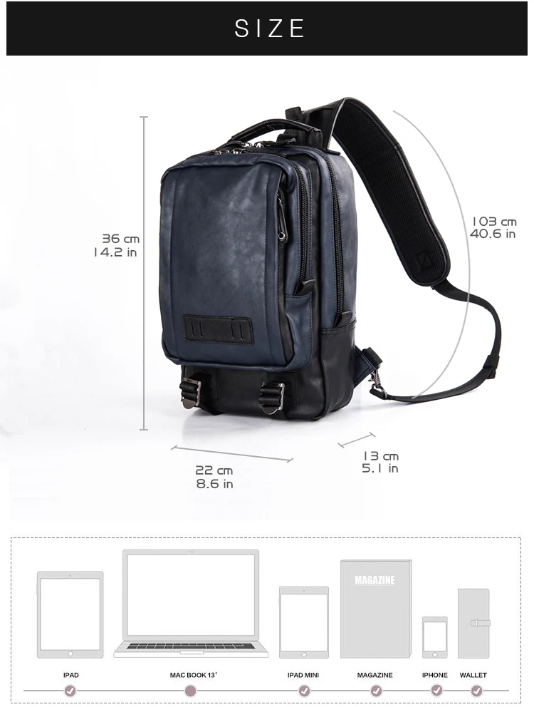 Capacity:iPad, iPad Mini, A4, umbrella, water bottle, wallet, phone book